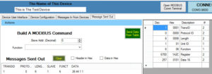 Tab4: Message Sent Out: A display of the outbound messages, and a table with all the data rows from the last message sent. You can use this to resend the message again, or manually rebuild it and resend it. Very helpful table for technologist’s who want to experiment with SCADA and MODBUS messages.
